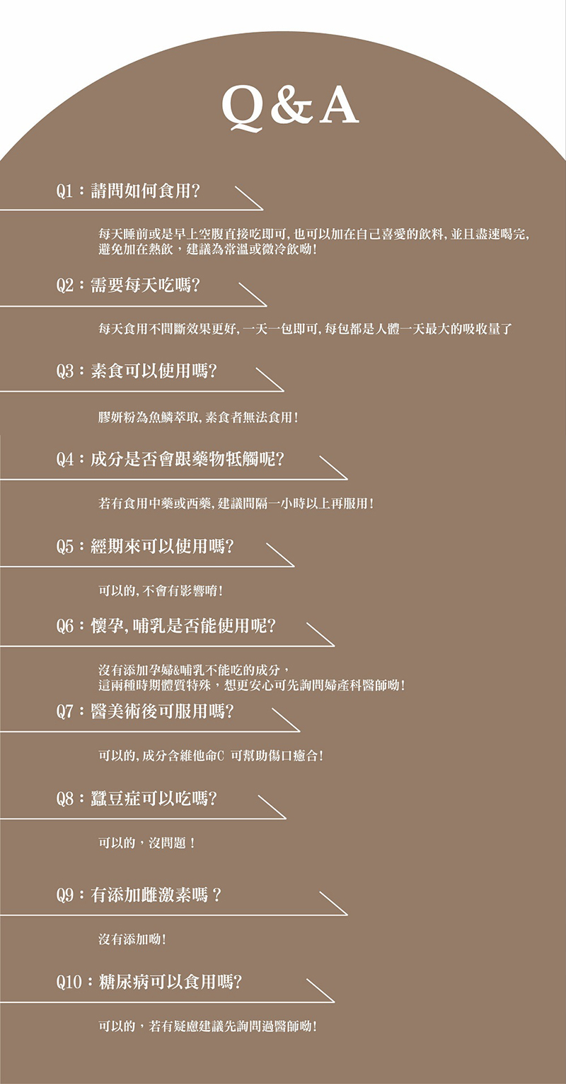 ▸食用方式:每日一包,早上空腹或是晚上睡前食用,可搭配水也可搭配喜愛的飲品食用即可。
