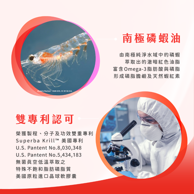 磷蝦油含有豐富的Omega-3脂肪酸和蝦青素,